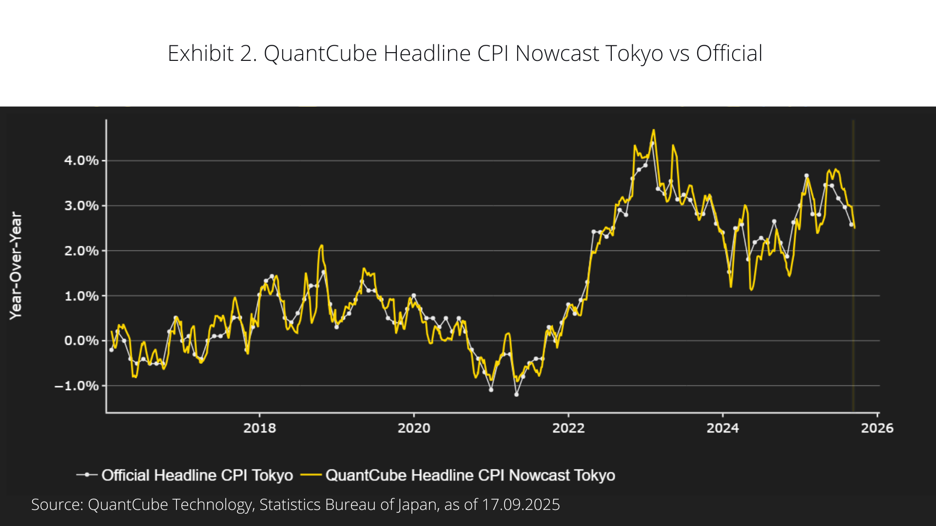 While QuantCube’s Industrial Pollution Nowcast – Nagoya (Exhibit 6) reveals a strong recovery from mid-2024 lows to a peak of over +30% year-on-year by mid-2025, the broader 18-month trend still reflects robust industrial momentum and resilience. This recovery underscores not only Japan’s industrial backbone but also Nagoya’s critical role in anchoring the shift toward more domestically driven growth.